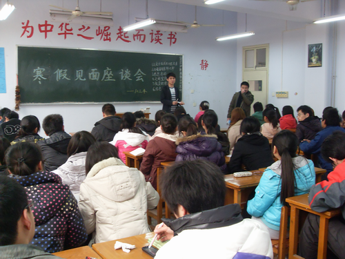 同学们在座谈会、主题班会上踊跃发言。在国内方面,春晚、春运、商品房“限购令”、物价水平、全国大面积干旱、“十二五”规划等成为同学们最为关注的热点焦点问题。同学们对胡锦涛主席访美、全球极端气候、中东北非政治形势、全球经济状况等问题进行了深入的交流与探讨。同学们还就食堂就餐、寒假社会实践、员工管理、校园规划与发展、教学、老员工就业、考研考证、公务员考试等诸多问题谈了自己的见闻及感受。特别值得肯定的是,同学们能够把寒假见闻或关注的焦点热点问题和所学专业知识相结合,提高了思考问题、认识问题、解决问题的能力。