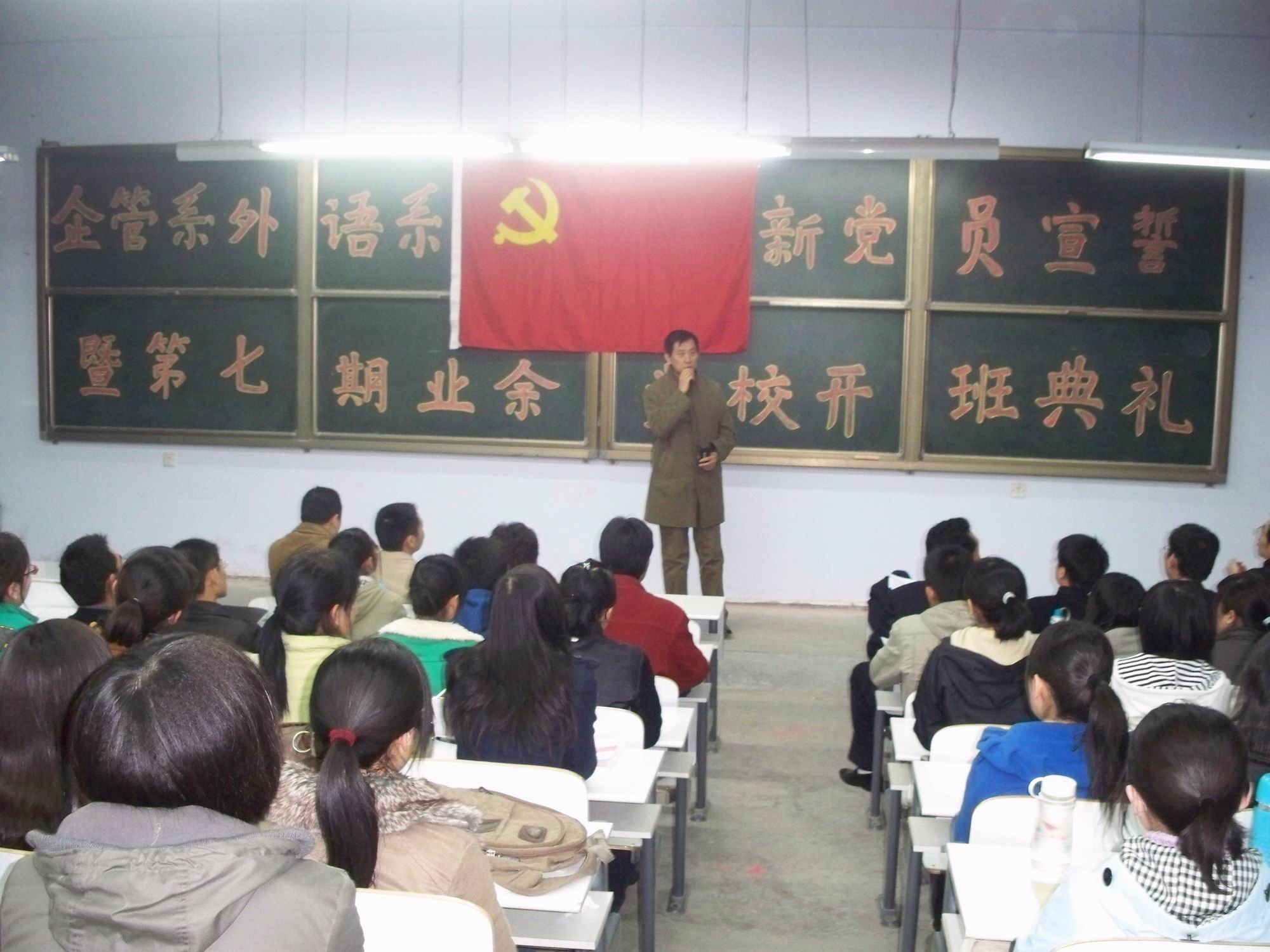 宣誓仪式结束后,戎书记为两系入党积极分子讲了本期党校第一讲——《中国共产党的性质》。他以渊博的学识、丰富的经验,旁征博引、深入浅出地阐述了党的性质,博得了同学们的阵阵掌声。