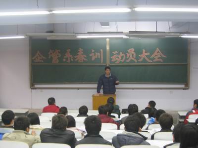 飞雪迎春,寒风袭人,教学二号楼107教室却气氛热烈,掌声不断。企管系春训动员大会在此隆重召开,系团学会主席团、团学会体育部及全体运动员参加了大会。系党总支副书记张小雁老师、系团委书记职正路老师、院体育教学部顾志勇老师、王少骅老师出席了大会。大会由职正路老师主持。