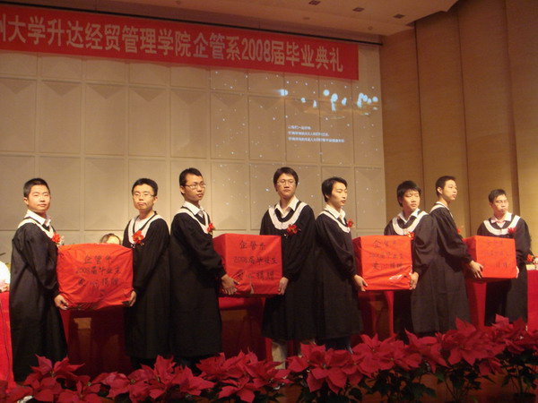 企管系张欣主任首先致辞,她代表全系师生向各位毕业生表达了衷心的祝贺和殷切的期望;接着崔幕岳经理为毕业生代表颁发了毕业证书并扶正流苏---毕业生代表庄重地从崔经理手中接过毕业证书,崔经理轻轻地将每个员工学士帽上的帽穗从右方摆向左方,这意味着员工们正式结束了本科学业也迈向了新的旅程。崔经理在之后的讲话中对广大毕业生表示了祝贺,并提出了殷切的希望。他希望毕业生:一要先就业、后择业再创业;二要经受挫折,艰苦奋斗;三要常怀感恩之心,牢记创办人“成功感谢他人,失败反省自己”的教诲,以自己的实际行动为国效力,为校争光。