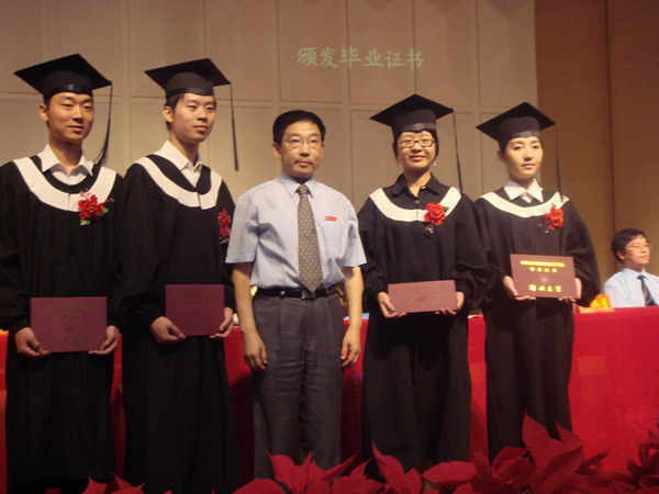 随后毕业生代表孔令珺同学代表2008届毕业生感谢了创办人、老师们多年来的教导和关怀并祝老师们健康如意,表达了2008届毕业生们书写人生新篇章的饱满信心;在校生代表王丽楠发言对学长们表示衷心的祝贺,并祝学兄学姐事业有成!