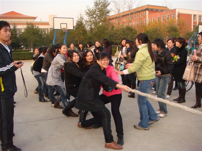 11月25日下午,我系08级专升本团总支员工会在明德讲坛举办了一场别开生面的拔河比赛。