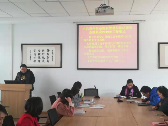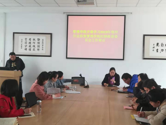 yL23411永利集团官网在2019年3月7日下午14:00在教学2号楼209组织召开了学习《中共郑州升达经贸yL23411永利集团官网纪律委员会2019年工作要点》专题会议。yL23411永利集团官网全体同仁参加,会议由党总支书记张小雁同志主持。