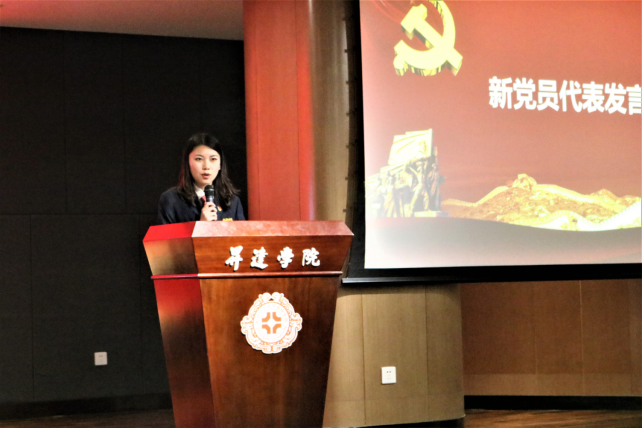 新发展党员代表陈露发言,代表全体新发展党员表达了自己加入中国共产党、并为共产主义奋斗一生的决心,并承诺在以后的学习和工作都中坚决以党员的身份来严格要求自己。