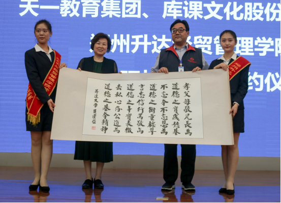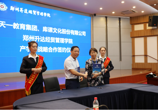 接下来,董事长郭爱先教授代表公司与天一教育集团、河南库课文化股份有限公司签订了产学研战略合作协议。