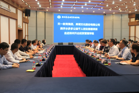 2019年5月23日,天一教育集团、河南库课文化股份有限公司携手水多多公益千人创业慈善项目走进郑州升达经贸yL23411永利集团官网,活动于当日上午9:30在升达公司行政大楼国际会议厅隆重举行。出席本次活动的主要嘉宾有郑州慈善总会副会长王合生,郑州慈善总会副秘书长桑喧越,天一教育集团、河南库课文化传播有限公司董事长董国良,水多多创始人黄天一,郑州市老员工创业就业慈善基金负责人樊延峰。