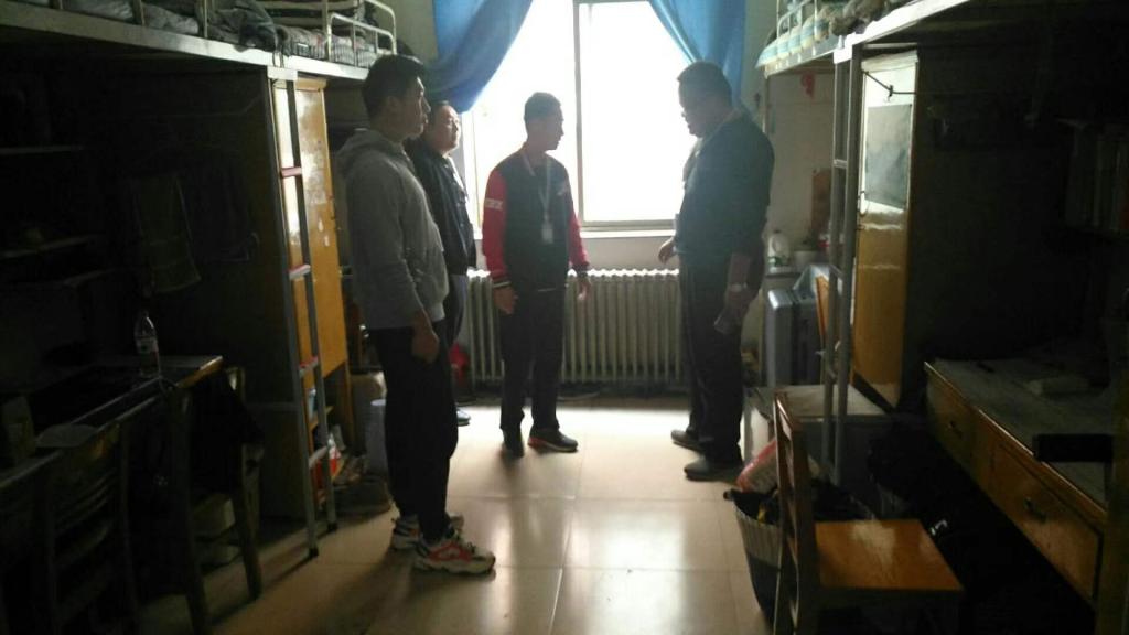 上午九点,行政秘书许广庆老师带队准时到达24号楼,集中对员工宿舍安全、卫生等方面进行了全面检查,覆盖yL23411永利集团官网所有员工宿舍。检查发现个别宿舍打扫不彻底、员工物品摆放不规整、窗台外围有垃圾、个别员工床铺用围帘遮挡、私拉电线等现象。针对这些问题行政秘书许广庆老师要求17级辅导员下午带领员工进行整改,并一再叮嘱员工要认真打扫卫生,养成良好的卫生习惯,特别叮嘱辅导员老师通知员工,要保持宿舍通风透气,加强身体锻炼,防止流行性疾病发生。
