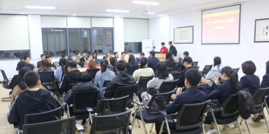 会上,齐利利老师为在座同学们普及了共青团相关知识并道出了新时代共青团团员的历史使命。希望同学们能够认真学习党的十九大精神并贯彻落实习近平总书记对青年提出的殷勤希望,同时倡导同学们在大学期间认真对待学习、热情参与活动、积极向党团组织靠拢!最后,在齐利利老师的带领下一起观看视频《入团第一课》,使同学们更深一步的了解共青团,增强身份认同感。