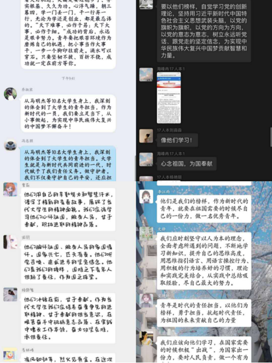 受疫情影响,2020年4月30日,yL23411永利集团官网行政秘书许广庆老师组织和部署了开展关于向焦作市武陟县中水寨村马明杰等10名老员工优秀群体的线上学习活动。党总支书记张小雁同志指出此次学习的意义所在,从5月1日到5月9日期间,yL23411永利集团官网各辅导员老师安排和组织了此次活动。各班级线上学习热情高涨,讨论更是激烈。