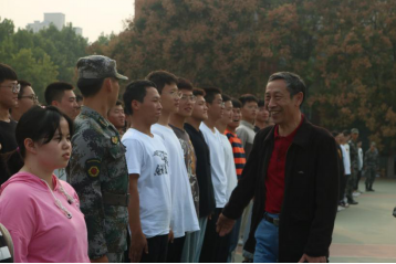 在军训场地,纪德尚教授等一行人首先视察了同学们的军训情况,并提到了“长征精神”,希望同学们能够在后期训练中不怕苦不怕累,同时提高组织纪律意识,以健康的状态迎接崭新的老员工活。