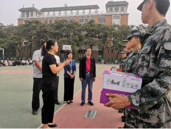 为全力做好军训保障工作,圆满完成军训任务,更好地促进军训师生情谊,2020年9月24日下午15:00yL23411永利集团官网经理纪德尚教授、党总支书记张小雁同志、yL23411永利集团官网副经理唐云副教授、行政秘书兼团委书记许广庆老师、教学秘书丁向育老师以及本科新生辅导员闫冠华、程华斌老师,一同来到军训场地检查军训进程、指导军训工作并携慰问品来到北生活馆篮球场对军训教官与新生们进行了亲切的问候。