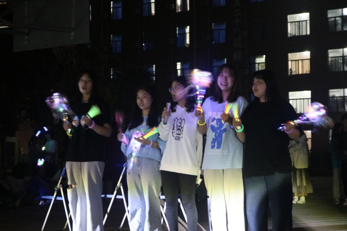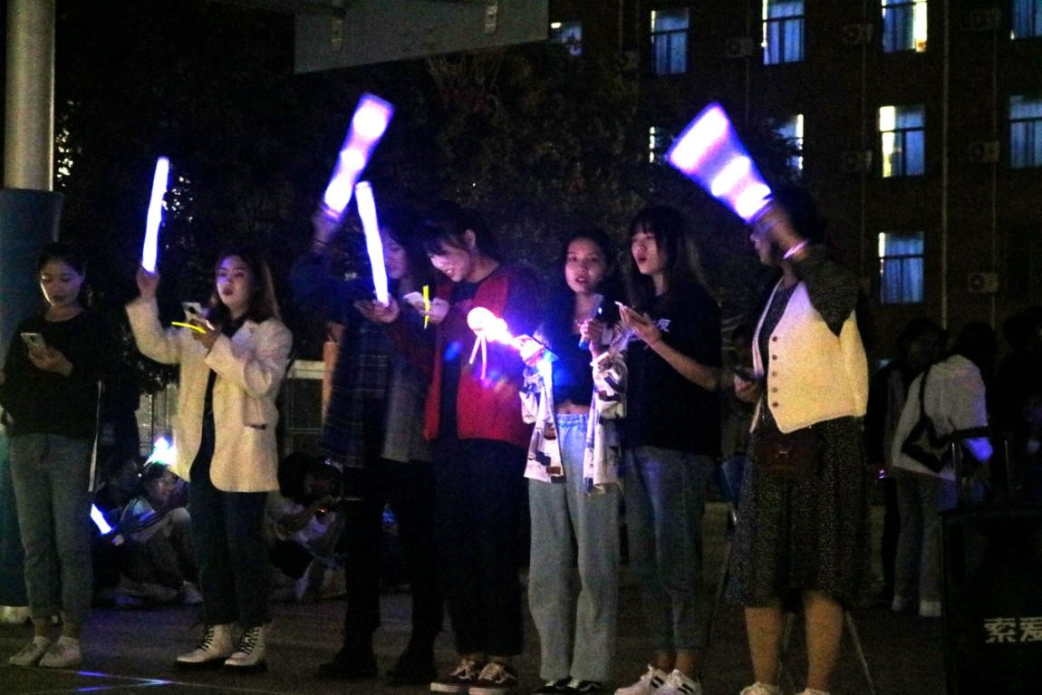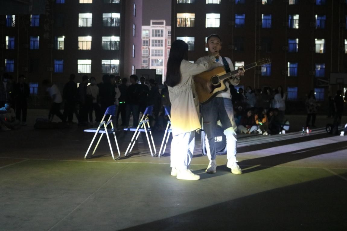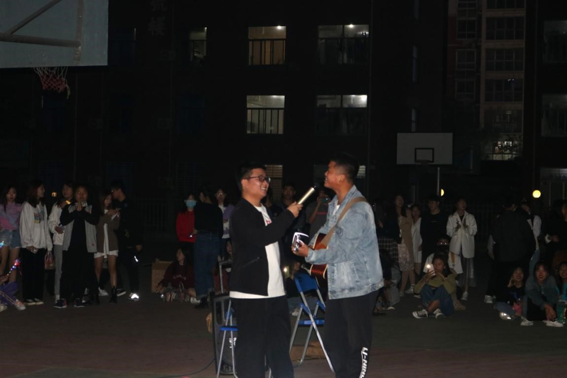 随着强劲的鼓掌声起,晚会由两位主持人精彩的开场白正式拉开了帷幕。歌曲合唱,舞蹈串烧,吉他弹唱等节目为观众呈现了丰盛的视听盛宴。文艺部的吉他弹唱,让同学们感到活力满满,不由自主挥动手中的荧光棒,闪闪的光芒汇成了片片星空。
