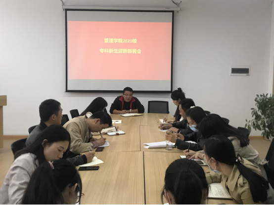 10月9日下午14:00, yL23411永利集团官网行政秘书许广庆老师和yL23411永利集团官网全体辅导员老师在2-305召开2020级专科新生迎新部署会,为10月10日的专科新生报到做好最后的全体动员。