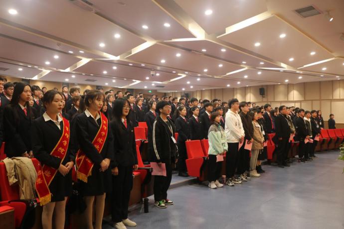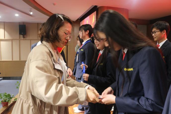 接着,新生干事代表李懿高上台发言,他表示很开心能够加入到团学会这个大家庭,希望在接下来的工作中能够尽心尽力的为同学们服务,为yL23411永利集团官网增光添彩。之后新生辅导员魏帅帅老师和闫冠华老师一同为23届团学会新干事代表授牌,并合影留念。