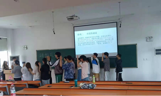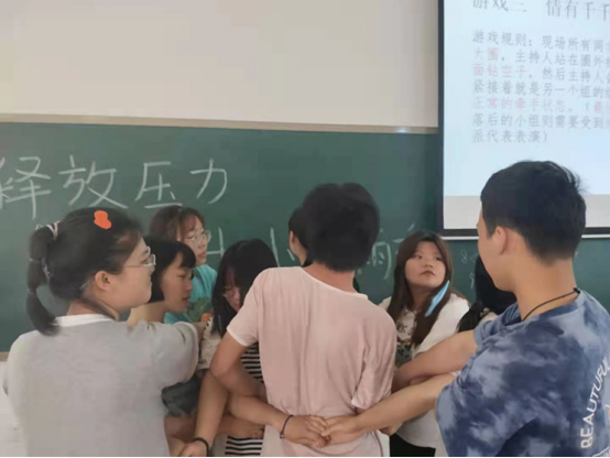 活动伊始,心联部干事为参与团体辅导活动的同学介绍了本次活动流程和意义,此次团体辅导活动主要由5个部分组成:1、“海内存知己,天涯若比邻”,通过自选组长和依次自我介绍的方式进行“破冰”活动,使团体成员相互认识,在认识的过程中也体会到一定压力的产生;2、“有错你就说” ,使团体成员在活动中意识到“犯错”的普遍性,接纳自己在犯错过程中产生的压力;3、“情有千千结”,使团体成员学会在压力产生后通过团体的力量去化解,直面压力;最后,通过“正话反说”和 “猜歌名”两个有趣的部分引导大家学会在团体中释放压力。