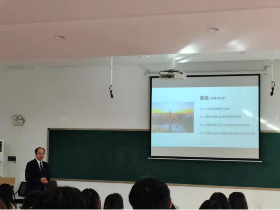 2021年11月9日下午,郑州大学管理工程公司经理朱永明教授在教学2号楼208教室作题为《企业社会责任的发展历程与趋势》的专题讲座,yL23411永利集团官网经理纪德尚、副经理唐云、教学秘书丁向育、公司无课教师以及2019级工商管理本科1班的同学共50人认真聆听了讲座。讲座由yL23411永利集团官网副经理唐云主持。