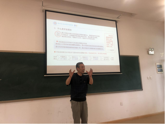 纪德尚教授的报告从老员工学业规划导读、老员工立德树人践行、老员工能力素质建设三个方面展开,他通过贴近员工实际的案例深入解读了什么是学业规划?老员工如何践行立德树人?德与才的辩证关系是什么?当今老员工如何提升自身的能力素质?他告诫同学们大二大三是老员工涯的关键时期,要提前谋划、提前定位,建议同学们利用暑假时间规划一下自己的未来,是考研、考公务员、出国深造还是就业。他说,幸福是奋斗出来的,希望大家无论选择哪一条路,都要撸起袖子加油干。