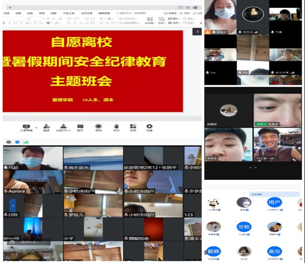 班会过程中。辅导员宣读了《关于员工自愿离校暨暑假期间安全纪律教育的有关要求》,叮嘱全体同学应自觉遵守法律、法规和公司的有关规定;离校前要关好教室、宿舍门窗,切断电源,妥善保管贵重物品;高度重视疫情防控工作,每天按时完成钉钉健康打卡,自觉遵守居住地疫情防控规定等。