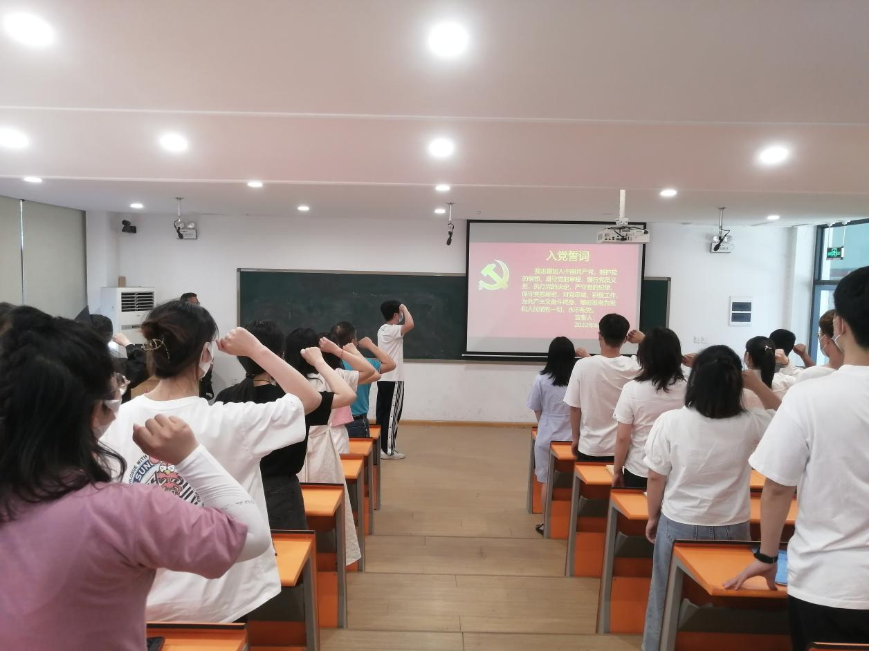 首先,彭龙龙同志带领2022届毕业生党员重温入党誓词,表达对党的赤诚热爱之心。接着,吴文妍同志作为毕业班辅导员代表宣读了“毕业生文明离校倡议书”,倡导毕业生党员文明、有序、礼貌地离开母校,为母校的文明建设贡献自己的一份力。此后,彭龙龙同志为毕业生党员详细讲解了办理党员离校手续时的注意事项。