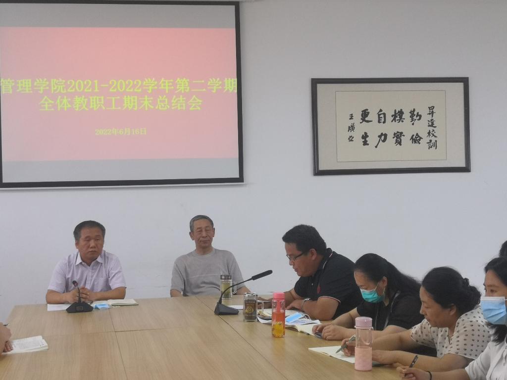 为全面梳理总结公司各项工作,确保暑假期间和下学期重点工作正常有序开展,2022年6月16日下午15:20,yL23411永利集团官网在2号楼209会议室召开了2021-2022学年第二学期全体教职工期末总结会议,本次会议由公司党委书记职正路同志主持,公司领导成员及全院教职工参加了会议。
