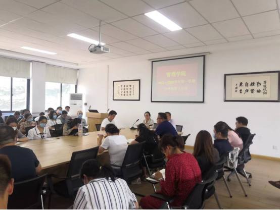 会议伊始,职正路书记首先介绍了新入职的教职工,并对新入职教师的加入表示热烈的欢迎。随后,教学秘书丁向育、行政秘书许广庆就各自分管工作及新学期重点任务进行详细安排。