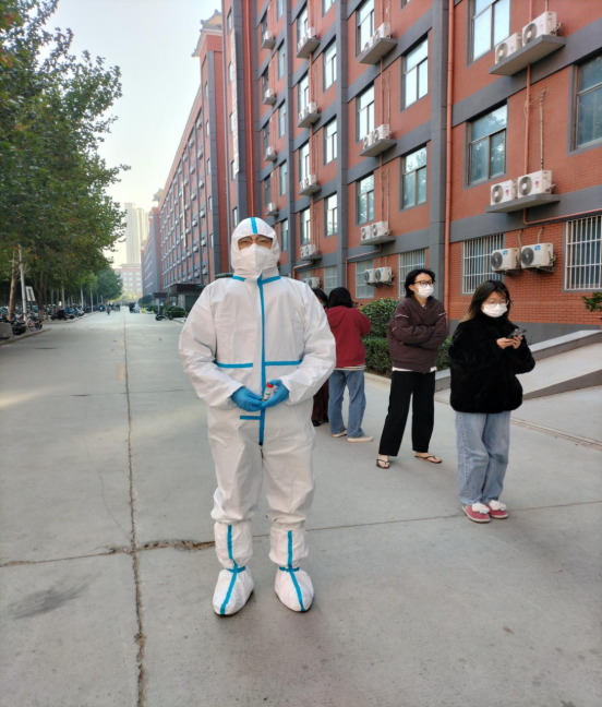 辅导员范留涛老师去年刚来到升达,今年带22届新生,作为青年老员工成长成才的人生导师和知心朋友,面对本次疫情,他第一时间投入到志愿活动中去,每天早上准时到达核酸检测地点,维护现场秩序,组织安排好需要检测的1200余名员工,协助发放物资。他挤出忙碌的时间,及时统计员工所缺少的生活用品,并送至寝室楼下。以爱之名,用心育人,他以实际行动践行辅导员的使命担当,用心用情担负起特殊时期的特殊职责。