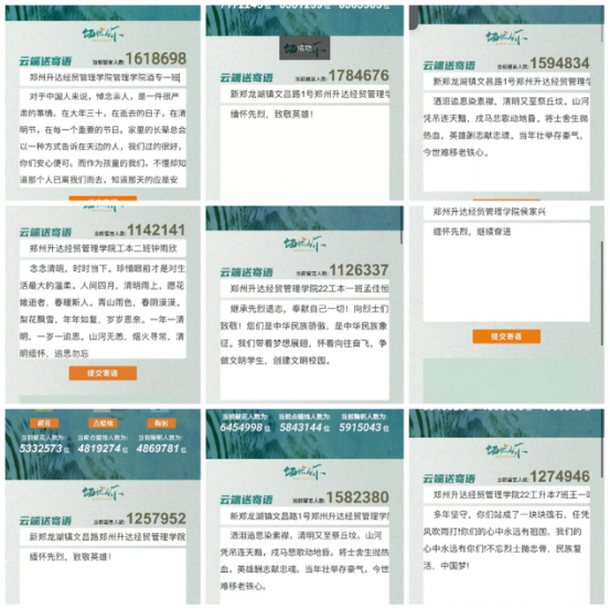 2023年4月3日,河南文明网联合大河网推出“云”上文明祭扫专题《致敬·缅怀·奋进》,通过云端寄哀思,永远铭记为民族独立、人民解放和国家富强、人民幸福作出巨大贡献和牺牲的英雄烈士。