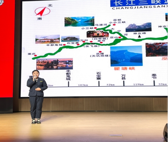 下半场,李荣蓉、路子怡和王泽晗同学进行讲解,她们则分别讲解豫园的三穗堂、轩辕黄帝故里、长江三峡等地区。各位选手的精彩表现吸引了全场观众的注意力。比赛结束,台下掌声雷动,久久不散,观众们都心潮澎湃,深深地沉浸在选手们的讲解中。