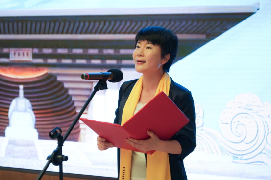 黄帝故里景区管委会主任王淑慧致辞。她强调,此次合作共建实践教育基地,既为高校员工提供了成长成才的实习平台,也为故里景区的创新发展提供了人才支撑、学术支撑,希望双方秉持“校地融合、优势互补、资源共享、合作共赢”的原则,将人才培养和景区发展深度融合,将景区资源与高校科研优势叠加,让更多、更新、更优的成果在故里景区更好转化,推动形成优势互补、美美与共的良好局面。