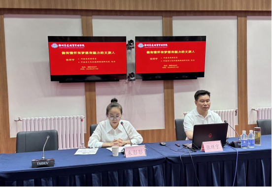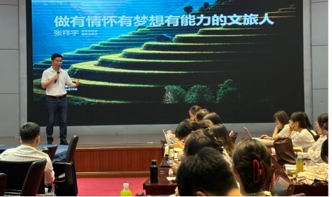 报告会上,张祥宇经理以其深厚的行业经验和独到见解,为在场师生呈现了一场精彩纷呈的知识盛宴。他以“做有情怀有梦想有能力的文旅人”为题,分享了文旅行业的最新趋势与未来展望,强调了情怀、梦想、敢干与能力对于文旅人成长的重要性。师生认真聆听,踊跃提问,张经理耐心解答,现场气氛热烈。大家一致表示,张经理的报告让自己大开眼界、信心倍增、深受启发、受益匪浅。
