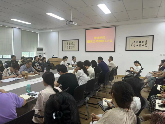 随后,职书记就暑期具体工作事宜进行部署。他强调,一是要认真做好学期末的收尾工作,包括试卷的批改和成绩的录入等,确保评卷工作的公平、公正和准确;二是要加强对暑期留校员工的管理工作,确保留校员工的学习、生活和安全;三是要做好防汛工作,确保校园安全度汛;四是要做好安全稳定工作,包括消防安全、假期出行安全、食品安全以及意识形态安全等方面的工作。要求全体教职工要提高警惕,加强防范意识,确保校园的安全稳定。