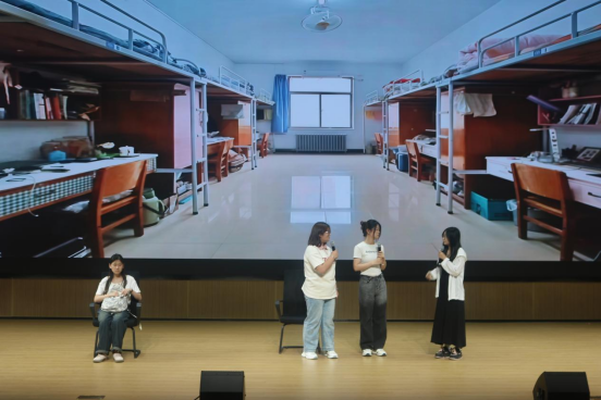 随后,《梦想的翅膀》在yL23411永利集团官网李佳凝、李怡涵等同学的演绎下,展现了家境贫寒坚持考研却遭室友嘲讽的林晓,富二代苏然直播创业遇糗事,以及绘画少女叶萱因抽象画风遭调侃的故事。在毒舌教授犀利点评、家庭温暖支持下,三人在考研挫折、直播危机、颜料调包等困境中相互支撑,在迷茫中奋力追寻让梦想展翅的力量,诠释梦想在困境中坚守与奋进的意义。