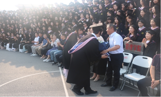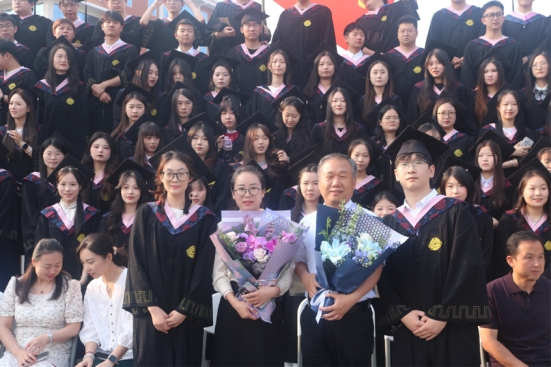 典礼现场,毕业生们身穿庄重的学士服,脸上洋溢着自信与憧憬。毕业员工代表手捧鲜花,向书记和经理们表达了深深的感激之情。鲜花的芬芳传递着学子们对师长的感恩,也象征着他们在校园中收获的温暖与关怀。毕业生与老师们亲切交流、合影留念,定格下这一珍贵而美好的时刻。