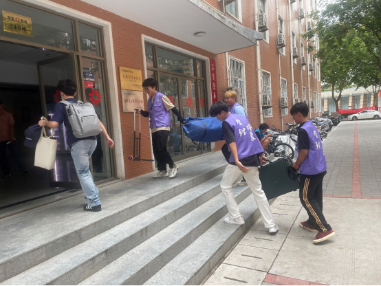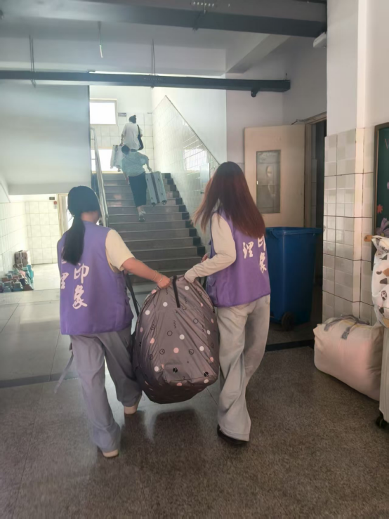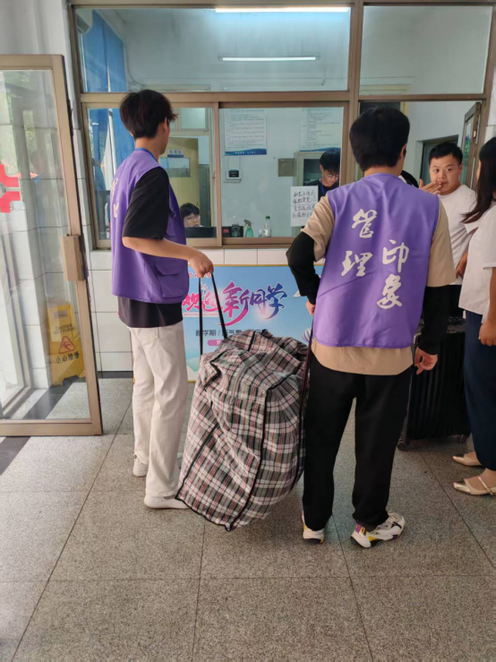 迎新现场,志愿者们忙碌的身影是校园中最动人的风景。早上7点,他们已在7号楼、31号楼两个服务站严阵以待。看到拎着行李箱的新生,便主动上前接过行李、陪同前往宿舍;遇到对报到流程有困惑的新生,志愿者们会耐心指引其完成智慧报道、身份核验等环节;面对家长与新生的问题,也逐一细致解答,用热情化解新生初来乍到的陌生感。