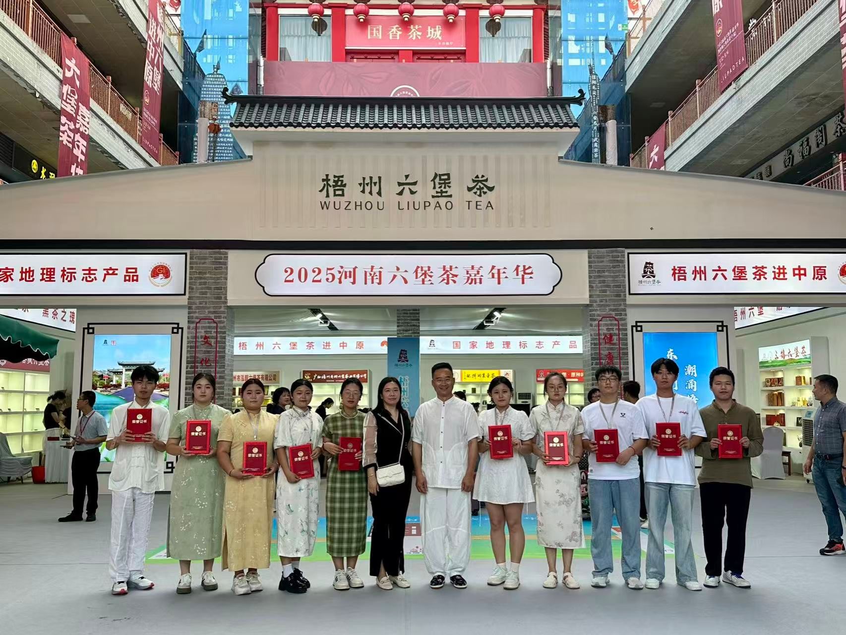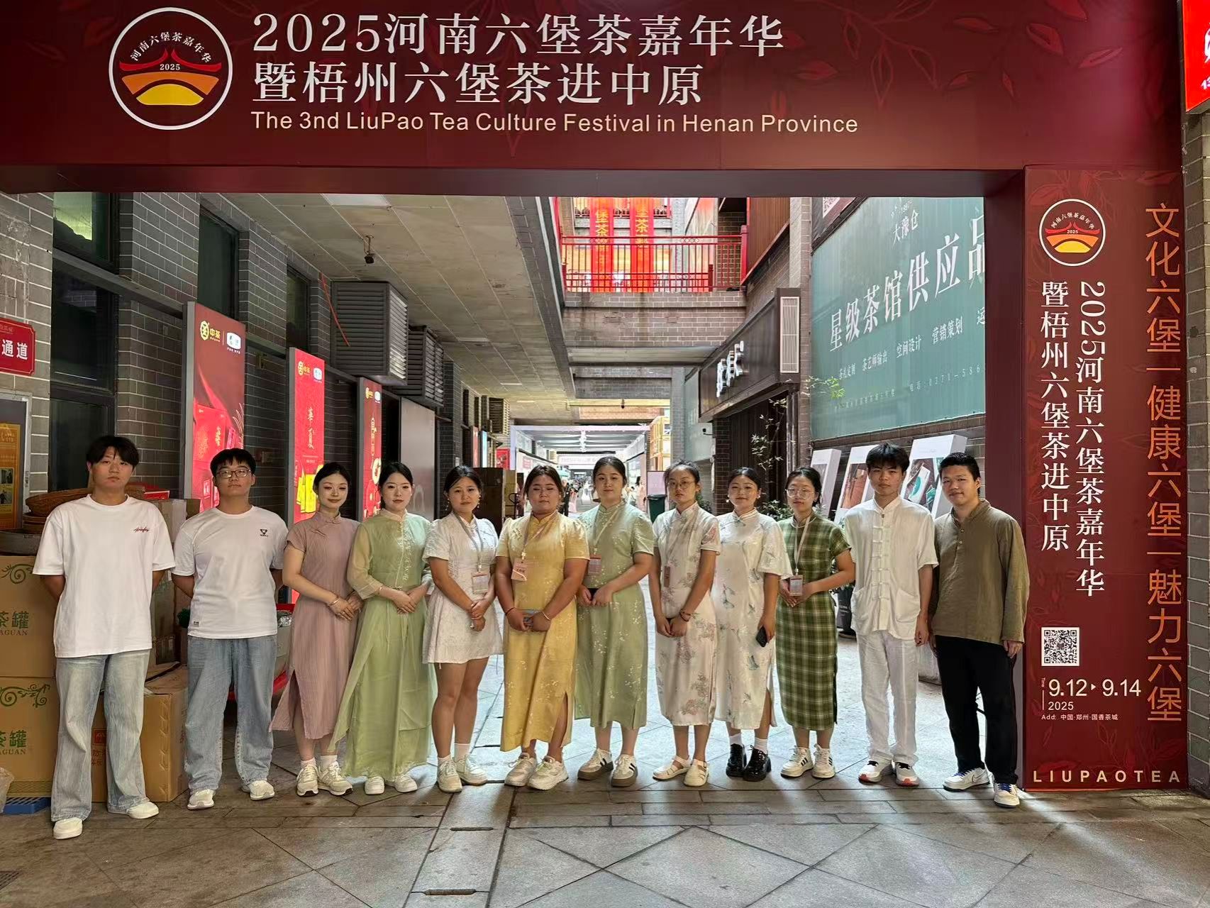 9月12日至14日,“2025河南六堡茶文化节暨梧州六堡茶进中原”活动在河南国香茶城盛大举行。旅游管理专业教师马逸为、李梦茹带队,樊鹏博等13名员工参加此次活动志愿者,引起良好社会反响,受到活动主承办单位的一致好评。