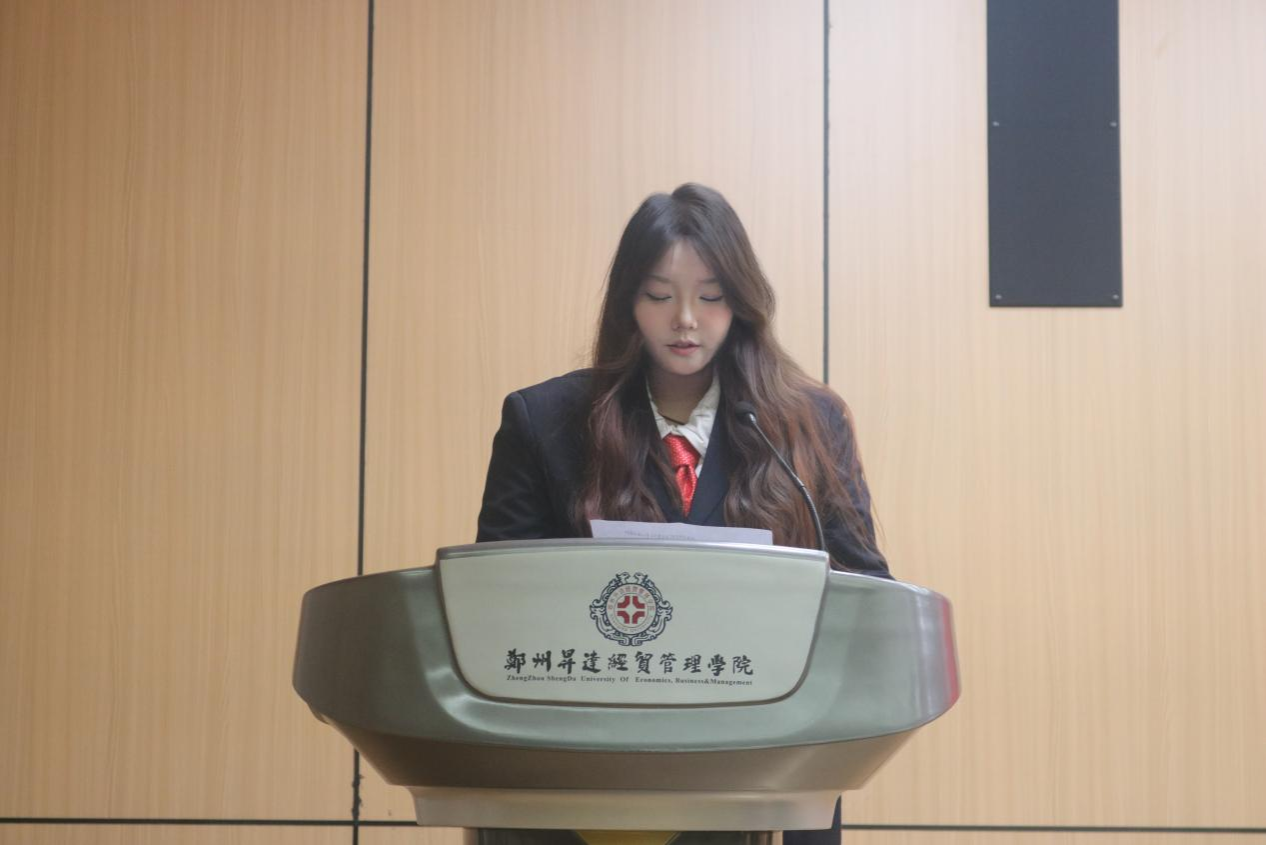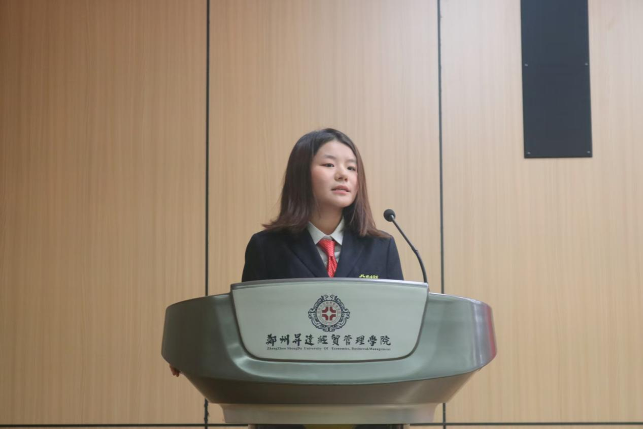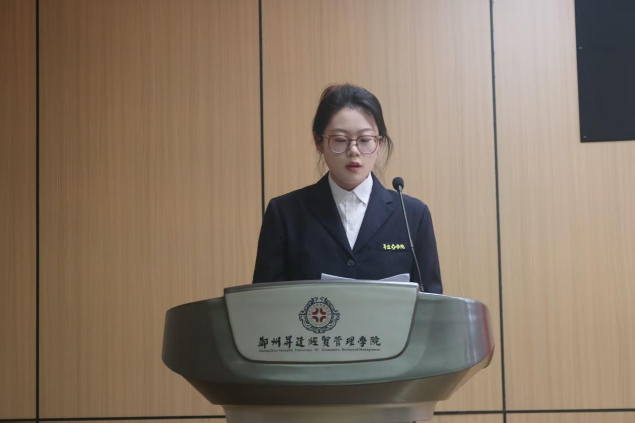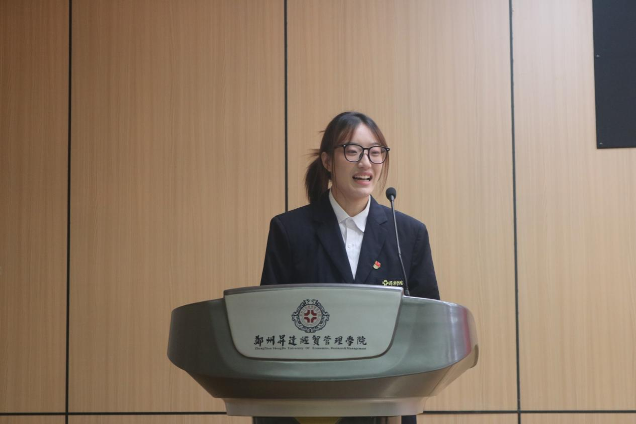新一届员工会主席赵晓菲学姐进行发言。她向所有支持与信任团学会的老师、同学表达感谢,分享自己在团学工作中的成长与收获,并指明未来将从四个方面进行工作:强化思想引领,筑牢信念根基;服务同学成长,搭建多元平台;完善内部建设,提升工作效能;传承优良传统,勇于开拓创新;更展望未来的发展蓝图,呼吁全体成员以奋斗精神为指引,在攻坚克难中续写团学工作的精彩篇章。