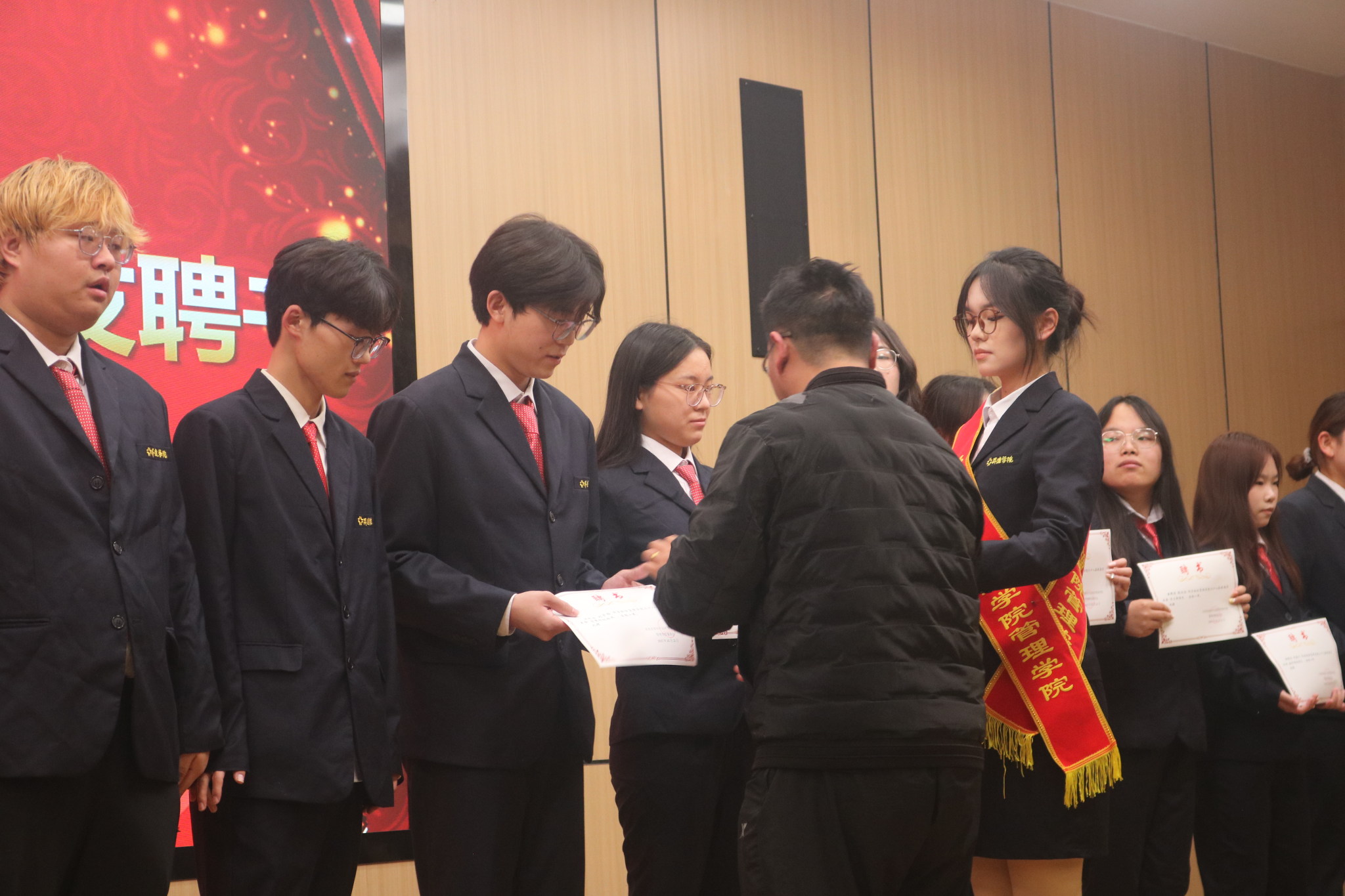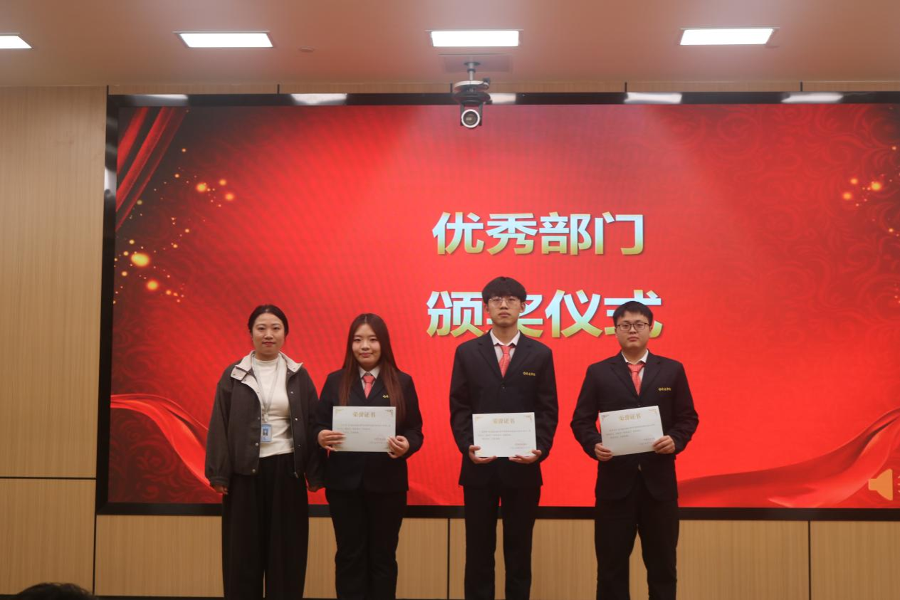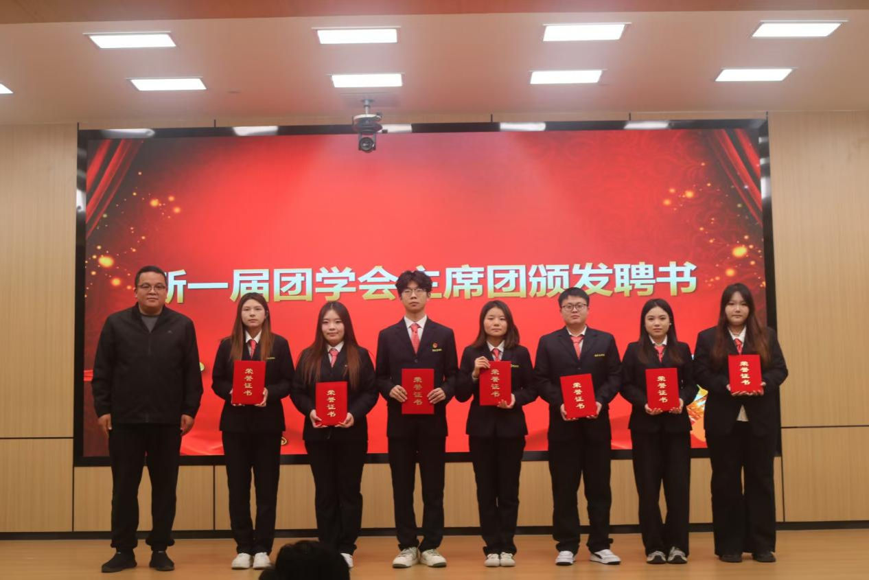 团委常务副书记马超老师为新一届团学会各部门部长颁发聘书并合影留念。