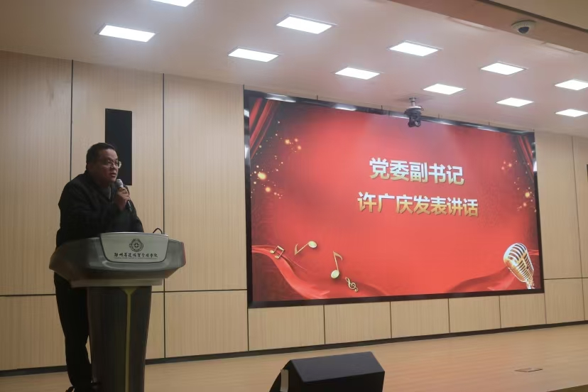 党委副书记许广庆老师发表讲话。他结合自身多年经验提出四点希望,第一,希望大家坚定信念,把准方向,做思想引领的“先行者”。第二,希望大家精诚团结,务实高效,做师生信赖的“服务者”。第三,希望大家勤于学习,勇于创新,做学风建设的“排头兵”。第四,希望大家砥砺品格,锤炼作风,做清风正气的“引领者”。
