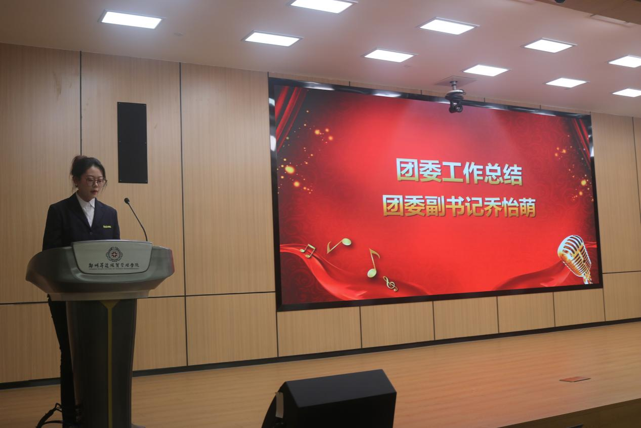 第27届团委副书记乔怡萌学姐作上学年团委工作总结。她回顾过去一年团委在思想建设、组织建设、志愿服务等方面的工作成效。同时,她对新一届成员寄予厚望:要以团学会为家,以公司发展为己任,认真履行职责,传承团学队伍的优良品质,共同为公司团学工作再上新台阶而奋斗。