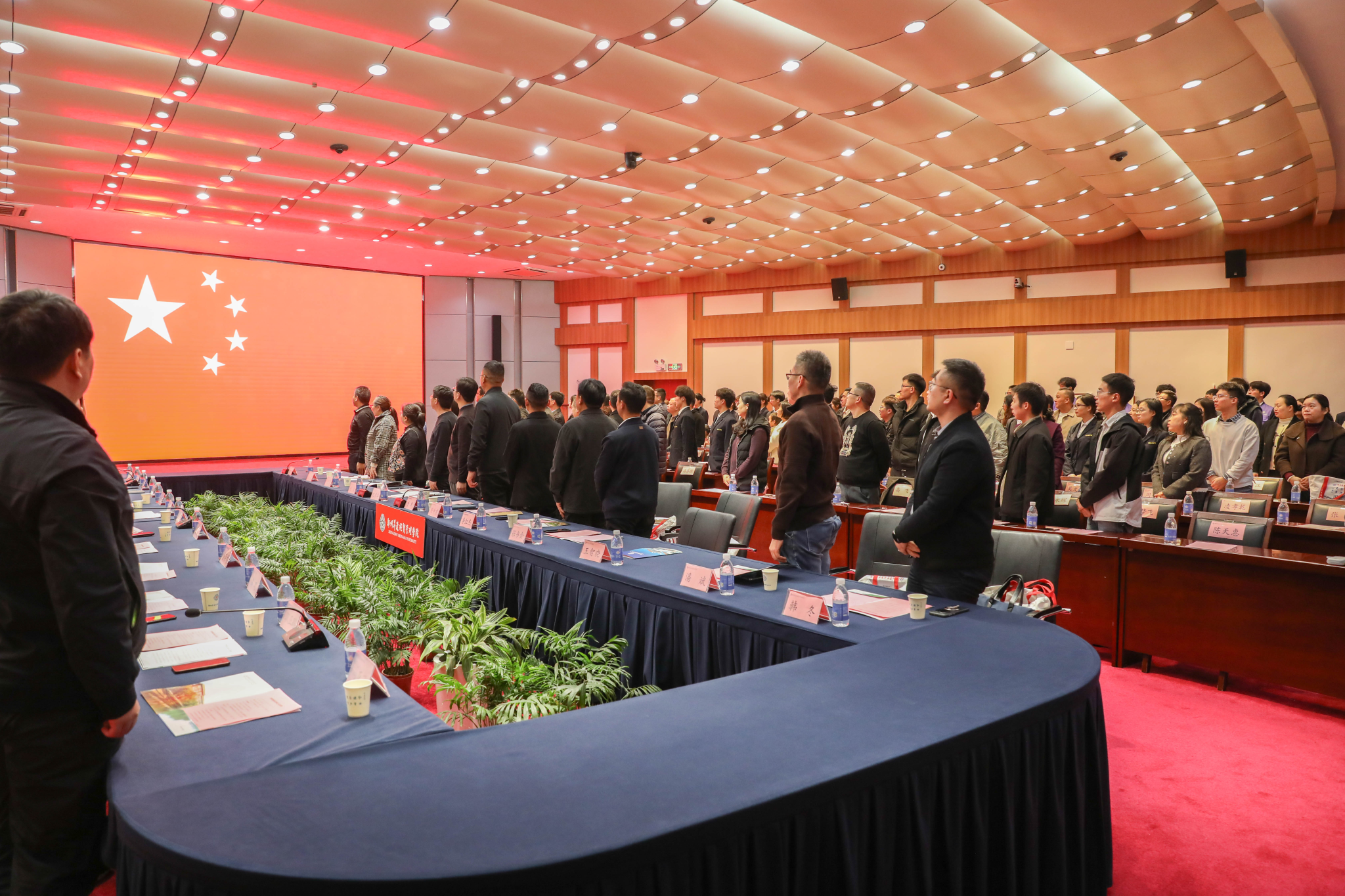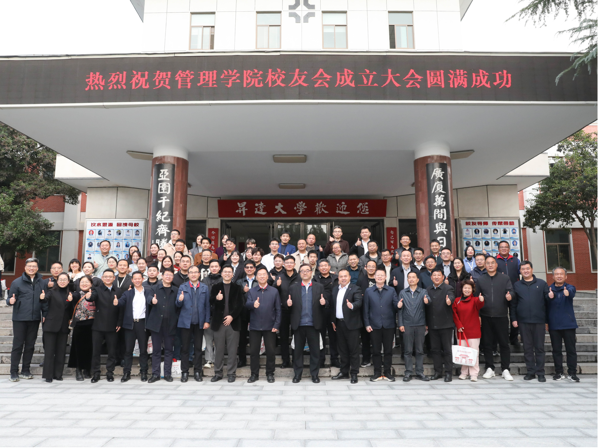 会后,全体与会人员在行政大楼前合影留念,并前往创办人纪念广场举行向创办人像敬献鲜花活动和校园参观。