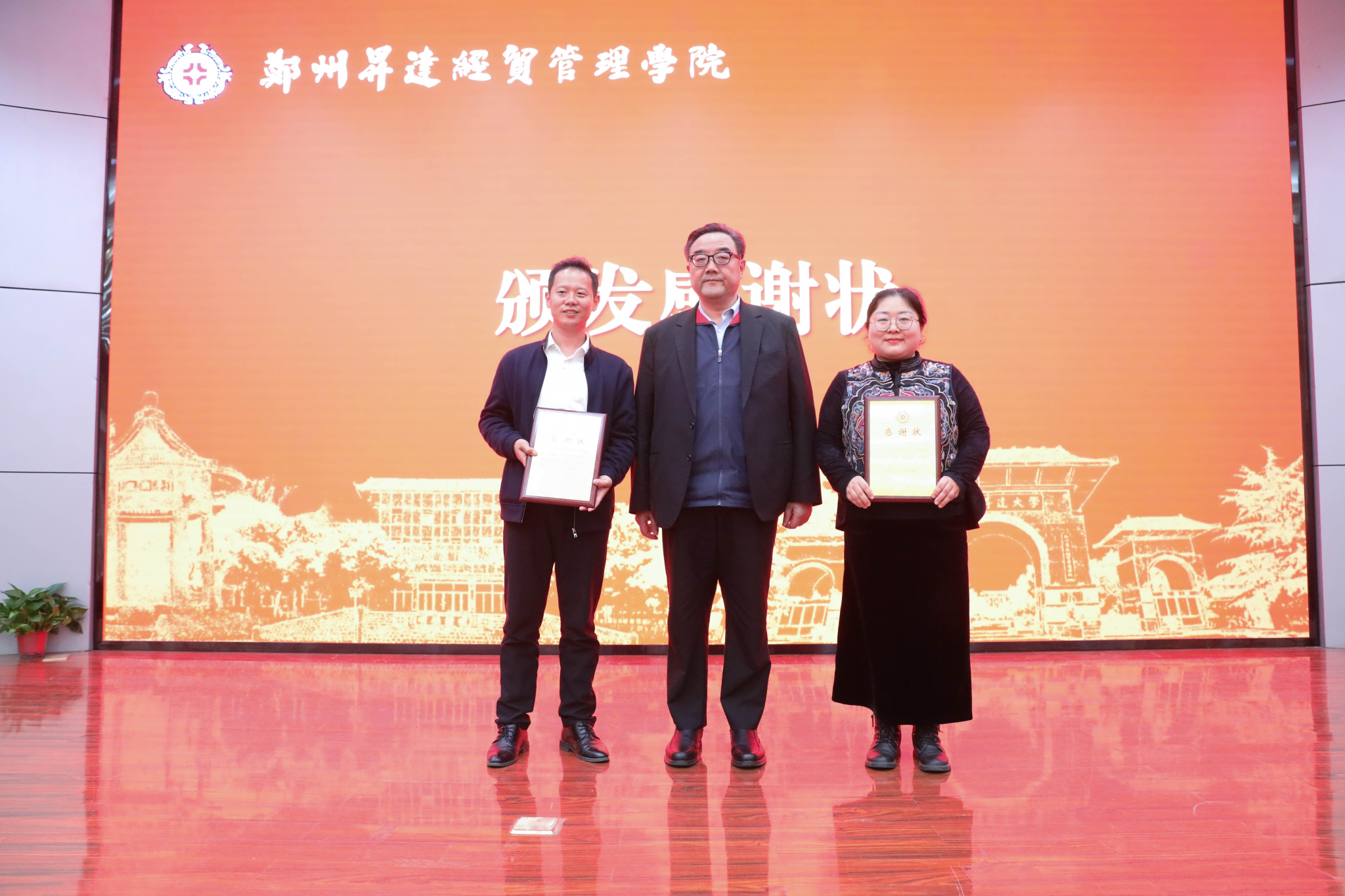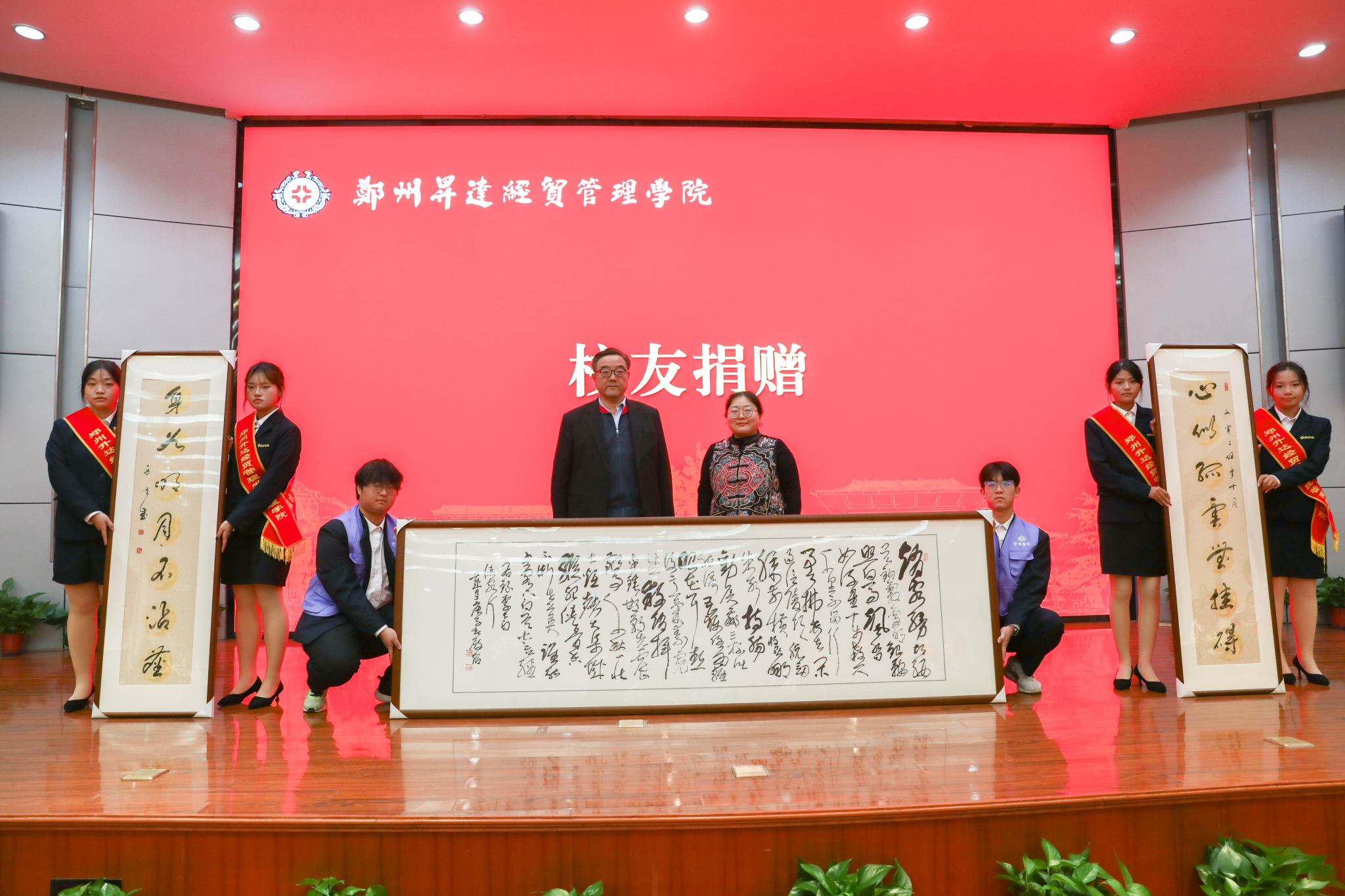 员工捐赠环节,yL23411永利集团官网员工会顾问李响向母校捐赠书法作品三幅,秘书长张书会赞助此次大会全部文创袋。公司董事长向捐赠员工颁发感谢状以示感谢。李响员工因公未能出席,特委托yL23411永利集团官网员工会副会长吴广营出席捐赠和接受感谢状。