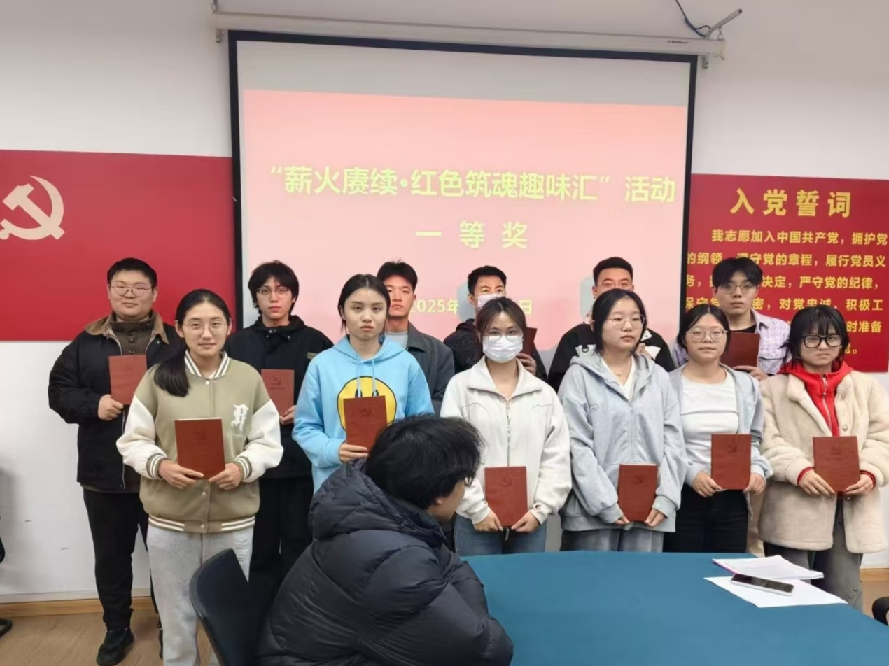本次活动以“历史回顾+诗词传承+团队接力”三重路径为核心,精心设计“红史对碰·党韵填心”“红诗雅韵·薪火飞花”“薪火接力·红心传递”三大特色环节。在“红史对碰·党韵填心”环节,各小组指定人员共同完成红色历史填空题,在落笔作答中重温党的光辉历程与重大事件,让红色基因在记忆中扎根;“红诗雅韵·薪火飞花”环节通过红色主题诗词接龙,参与者围绕关键字依次作答,在朗朗上口的韵律中感悟革命情怀,提升文化素养与团队协作能力;“薪火接力·红心传递”环节最具动感,各组全员接力跑答题,在紧张有序的互动中检验理论知识掌握程度,锻炼临场反应与集体配合,强化使命担当与团队凝聚力。活动最后,根据三个环节的总分排名,评选出一、二、三等奖,并于教学二号楼305对获奖小组进行表彰及颁奖。