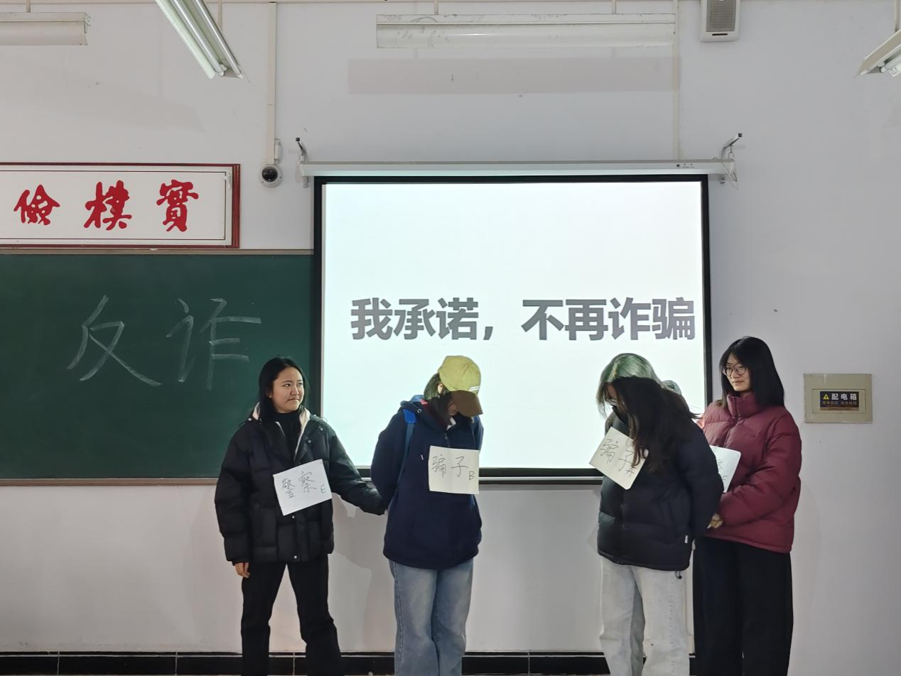 活动现场,团支书们通过PPT 演示、视频播放等形式,详细拆解刷单返利、校园贷、冒充师长客服、游戏账号交易等常见诈骗套路,结合真实案例剖析诈骗危害与识别要点。知识竞答、“反诈剧本杀” 情景推演、沉浸式角色扮演等互动环节让学习氛围热烈高涨,同学们在趣味参与中熟练掌握 “不轻信、不透露、不转账” 的反诈核心原则。部分班级还现场指导同学们下载注册国家反诈中心 APP,讲解来电预警功能使用方法,构建技术防护屏障。