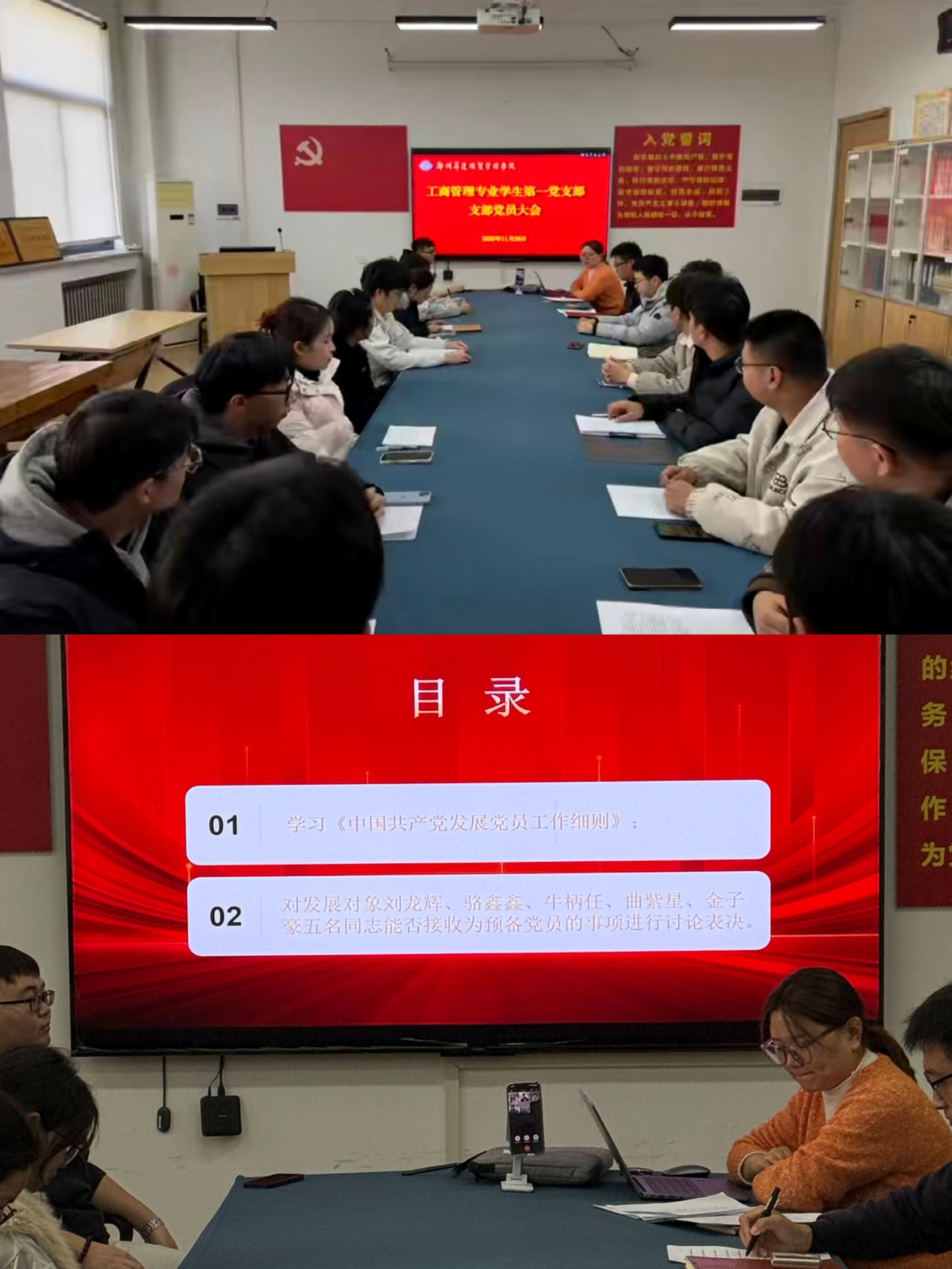 为进一步规范党员发展程序,确保党员发展质量,yL23411永利集团官网工商管理专业员工第一党支部于2025年11月26日10点在教学2号楼305会议室召开接收预备党员大会,讨论刘龙辉、骆鑫鑫等五位同志的发展问题,支部全体党员参加本次会议。