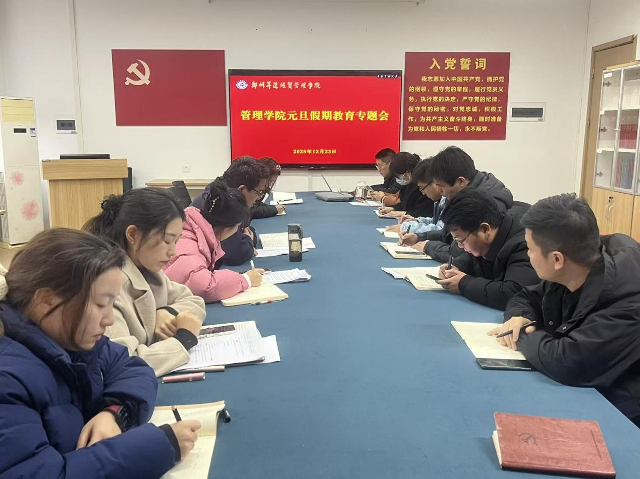 会后,各辅导员老师陆续召开“元旦”假期安全教育主题班会,主要从离返校时间、旅途安全、校外表现、留校事宜等几个方面展开,结合具体典型事例进行了详细的介绍。在强调保障员工人身财产安全的同时,又引导员工做到内外合一,即无论身处何处,都可以遵守法律法规、社会道德规范及当地相关规定,做一名合格的升达学子。
