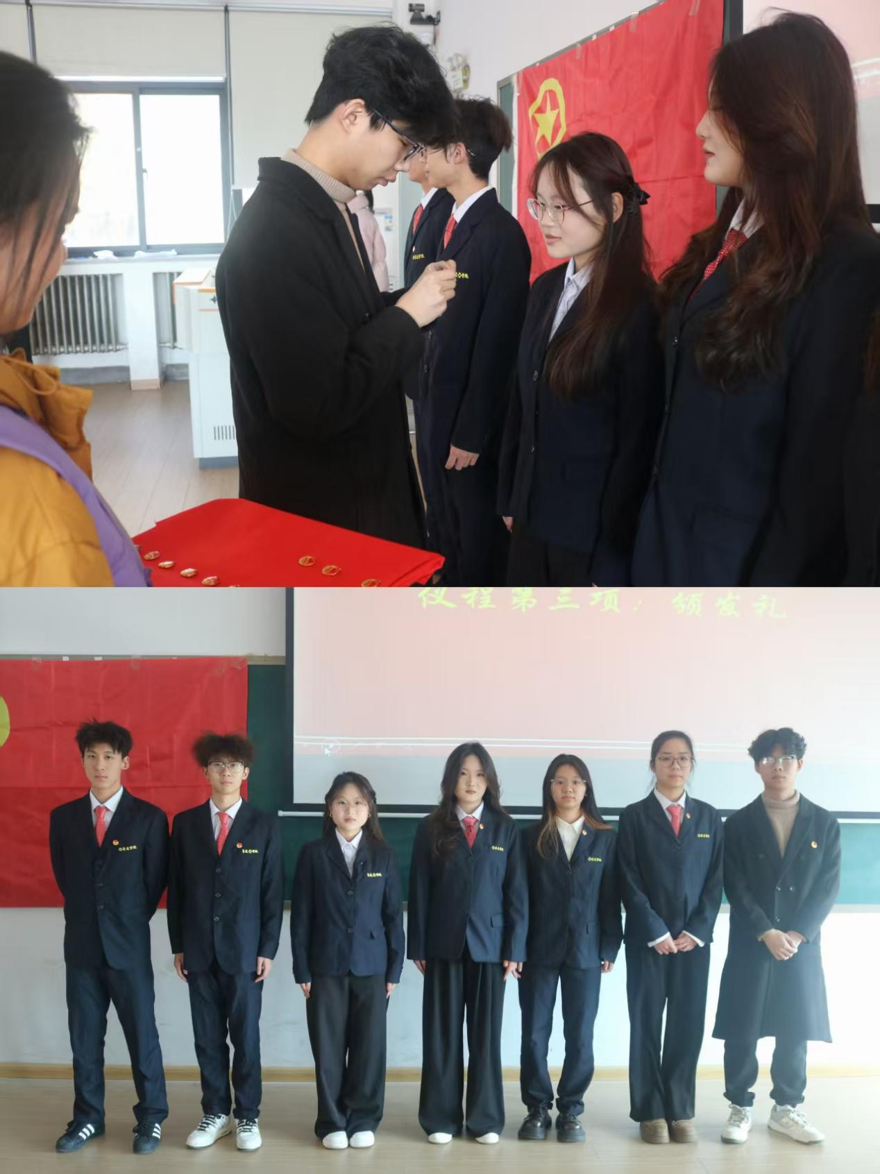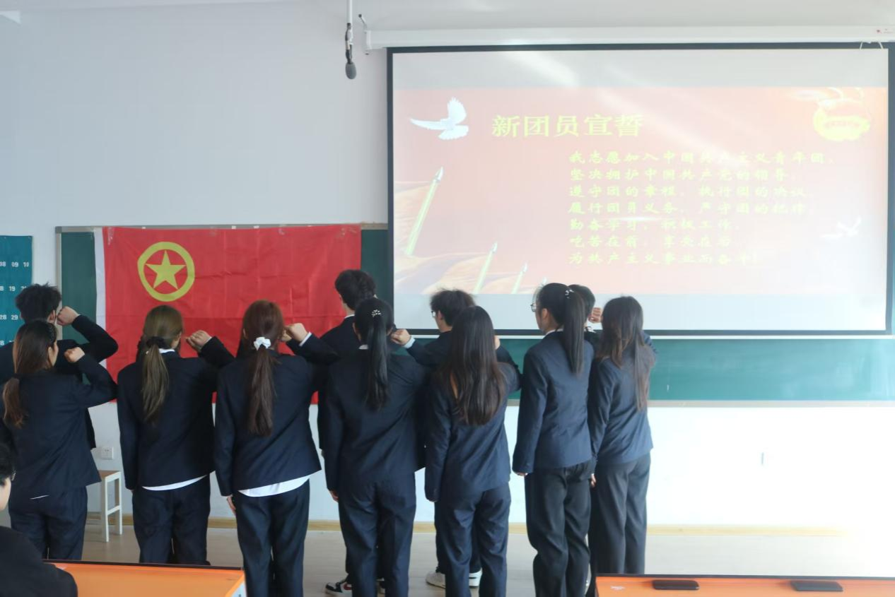 随后,由组织部副部长祁春竹宣读新团员名单,由组织部部长毛俊帆和团委副书记宋小强给新团员佩戴团徽。在组织部副部长孙卢艺的领誓下,各位新团员右手握手举过肩,在团旗下庄严宣誓。