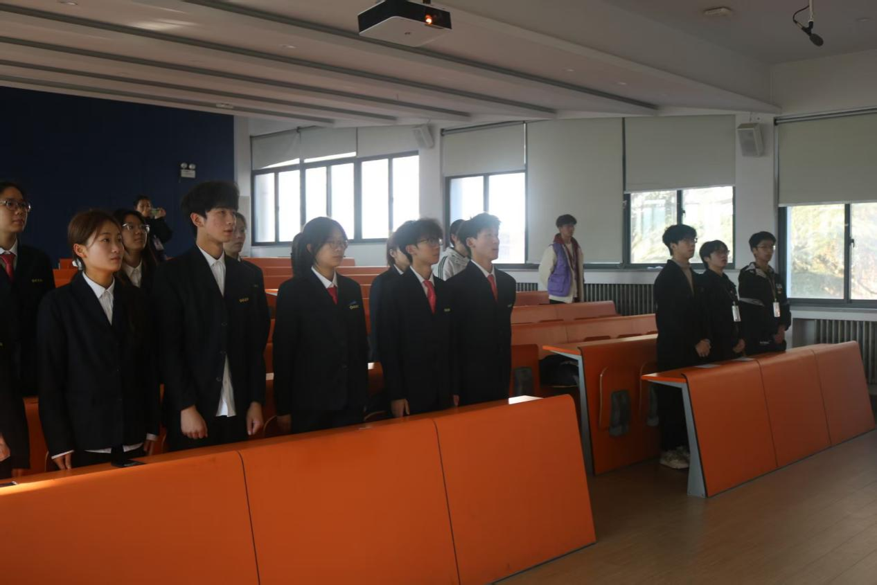 仪式在庄严的国歌声中拉开序幕,全体人员肃立齐唱。
