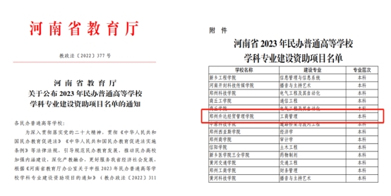 近日,河南省教育厅发布《关于公布2023年民办普通高等公司学科专业建设资助项目名单的通知》(教政法〔2022〕377号),公司工商管理专业成功获批2023年河南省民办普通高等公司专业建设资助项目。