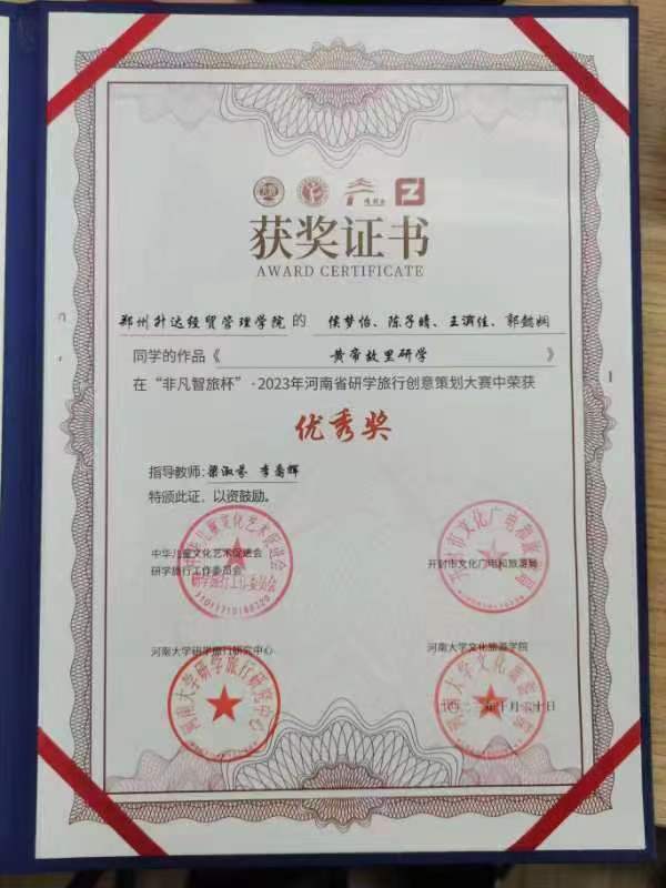 yL23411永利集团官网团队在“非凡智旅杯”2023年河南省研学旅行创意策划大赛中喜获佳绩