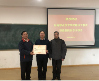 2020年12月31日下午13:00,yL23411永利集团官网邀请河南职业技术公司旅游公司经理陈佳平教授来公司作学术报告,报告主题为:基于“双高计划”的高水平专业群建设。报告开始,公司张金安副董事长为陈佳平经理颁发了客座教授聘书,yL23411永利集团官网全体教师参与听讲座。